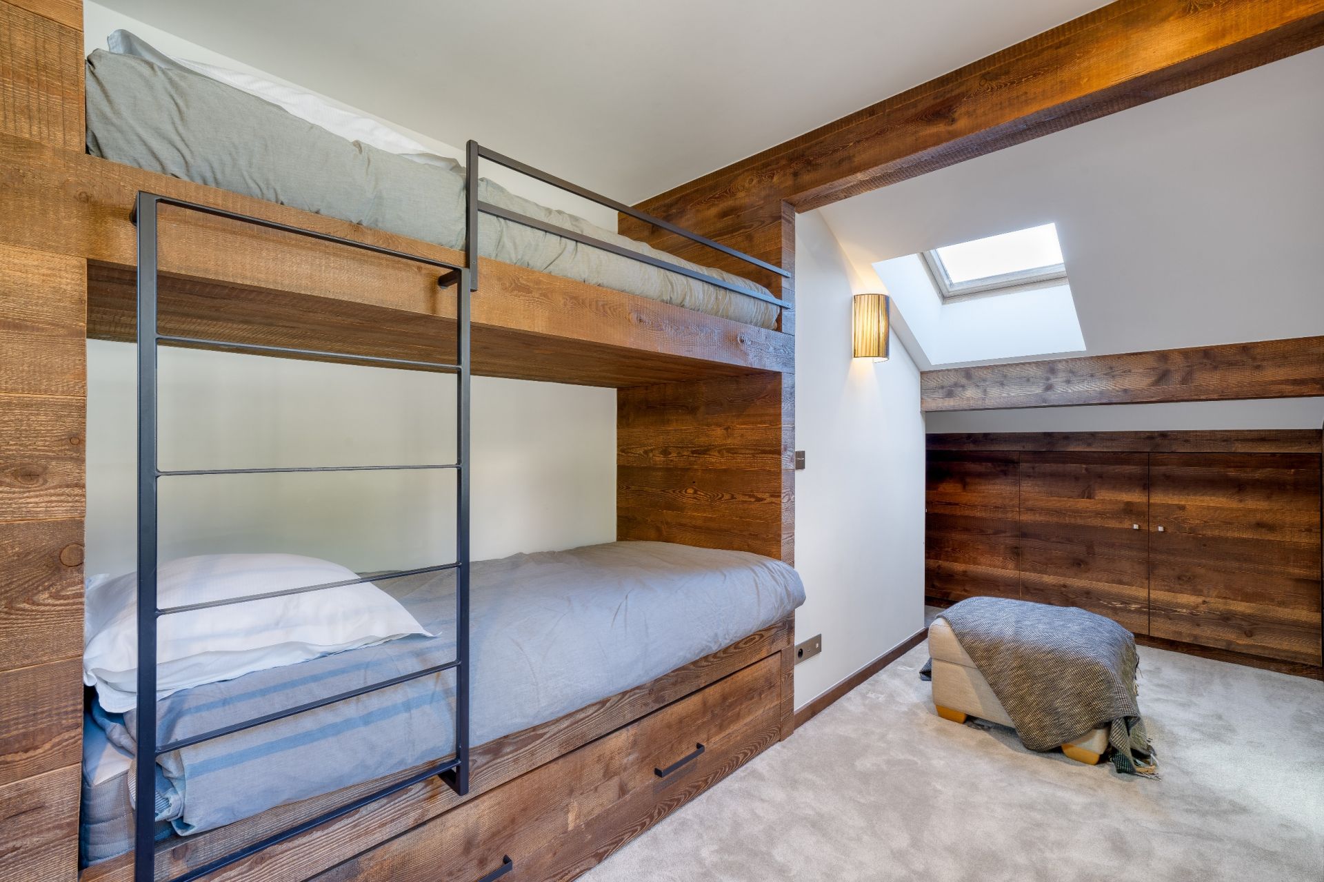 Au niveau -1, vous trouverez 4 belles chambres en suite, dont une ouverte sur un jacuzzi extérieur afin de vous prélasser lors de votre retour du ski.