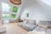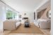 2 espaces de réceptions , un espace de vie ultra contemporain agrémenté de larges baies vitrées au sein d'une extension cubique et d'une surface de 51 m2 , entièrement recouvert d'un parquet en chêne composé d' une salle à manger ultra lumineuse de 51 m2 en accès direct sur le jardin exposé Sud , sud-ouest et un large Living agrémenté également de grandes baies donnant sur une immense terrasse en teck .