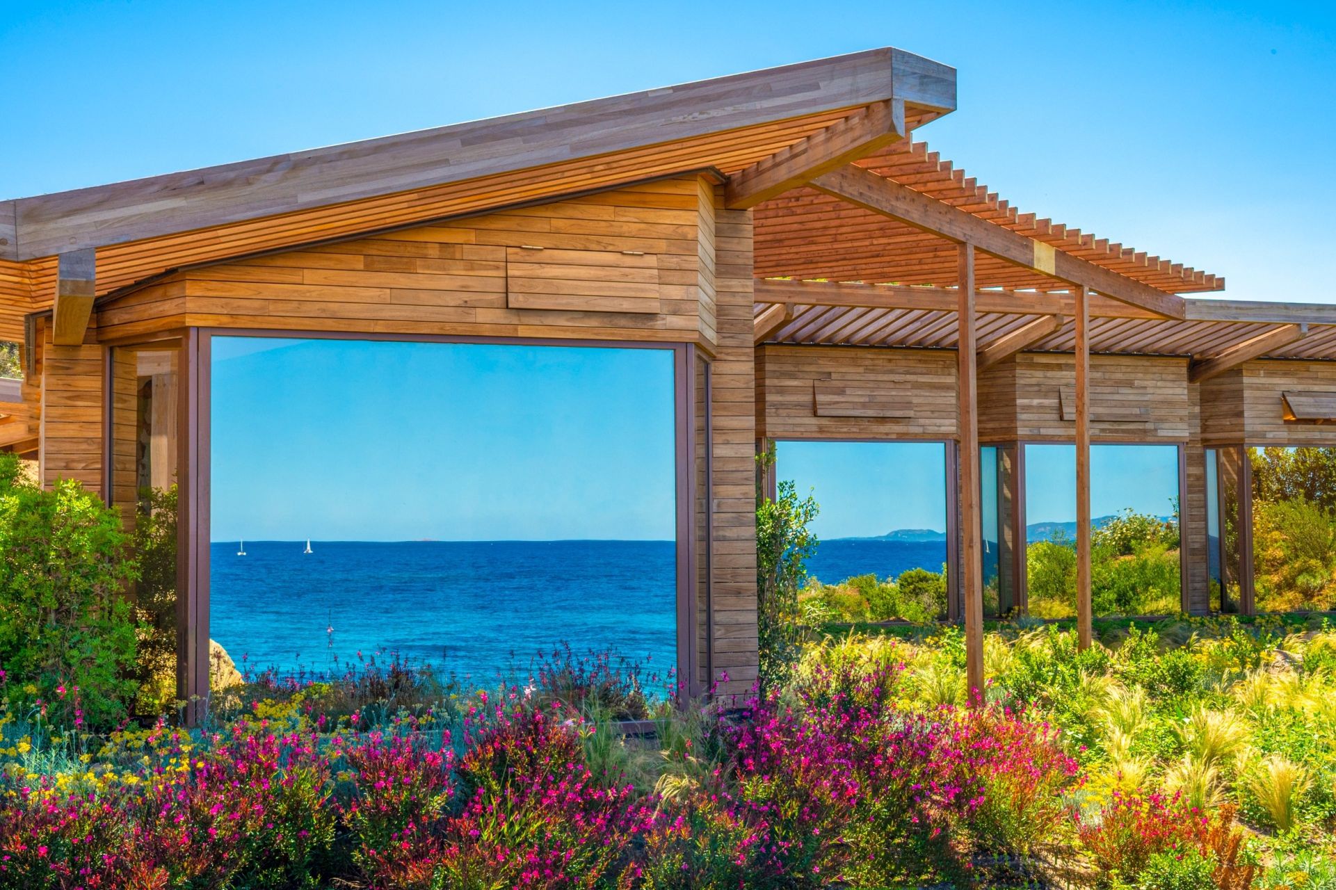 Édifiée en position dominante dans l’une des plus belles baies de l’île, cette superbe maison d’architecte à ossature bois offre une vue en tout point exceptionnelle.