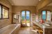 La partie principale, orientée côté mer, dispose d’un hall avec toilettes invités, d’un double salon/séjour lumineux, d’une cuisine entièrement équipée et de grandes terrasses donnant sur la mer. Vous y trouverez également une première chambre avec lit double (160 cm), salle d’eau et WC, donnant sur une terrasse, ainsi qu’une seconde chambre avec lit double (140 cm), salle d’eau et WC, avec vue sur la piscine. Une buanderie est également à disposition. Quelques marches plus haut, la chambre principale, équipée d’un lit double (160 cm), dispose d’une salle de bain attenante avec WC séparé et d’une terrasse privative.