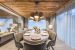 Dès l’entrée, le ton est donné : les espaces à vivre sont baignés de lumière naturelle, et la décoration, à la fois sobre et sophistiquée, crée une atmosphère apaisante. La cuisine ultra design, complétée par une cave à vin, s’ouvre sur un vaste séjour qui comprend une salle à manger, un salon avec billard et un coin télé réchauffé par une cheminée. Côté nuit, six chambres en suite accueillent les hôtes avec confort et discrétion, chacune révélant une identité douce et soignée.