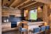 Le chalet dispose d'une pièce de vie lumineuse et ouverte comprenant deux espaces salons, une cuisine ouverte sur la salle à manger et une belle cheminée.