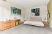 La suite parentale, située au rez-de-chaussée, offre une atmosphère intime. Elle comprend une chambre spacieuse, un dressing sur mesure, une salle de bains et un salon sous verrière, idéal pour se détendre.