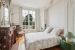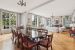 L’entrée, décorée de somptueuses boiseries d’époque mène au vaste séjour double baigné de lumière, doté d’une cheminée et d’un parquet de Versailles et de bibliothèques Louis XV rehaussées de dorures à l'ancienne. Cette pièce de réception s’ouvre sur une terrasse plein sud et un jardin paysager offrant une vue dégagée.