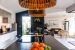 Constitué d'une entrée avec placard, la pièce de vie s'ouvre sur la cuisine aménagée et équipée, la salle à manger, le salon ainsi que sur un bureau.