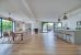À l’extérieur, les aménagements ont été pensés pour des moments de convivialité en famille ou entre amis : coin repas ombragé, grande terrasse, piscine chauffée, espaces dédiés au stationnement des voitures et des vélos.