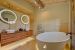Chambre 1 : Lit double de 180 x 200, TV, Bureau, Dressing, Salle de bains avec double vasques, baignoire, douche et toilettes séparées, Accès terrasse de la piscine