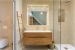 Salle de bains partagée entre les chambres 5 et 6 avec vasque, baignoire, douche. Toilettes séparées.