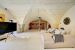 Séjour vouté avec salon, cheminée, cuisine équipée ouverte sur le séjour,