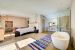 Chambre 2 : Lit double, petit salon télévision, dressing, vasque, douche, toilettes Chambre 3 : Lit double, télévision, dressing, vasque, douche, baignoire, toilettes. Chambre 4 – Master : Lit double, télévision, grand dressing, double vasques, douche, baignoire, toilettes japonais, Accès à l’extérieur