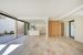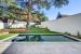 Grande baie vitrée panoramique ouvrant sur un jardin paysager avec Piscine chauffée de 9mX3M,