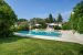 Vous apprécierez le charme du jardin, avec son immense platane, ses oliviers et pin parasol. La piscine de 13 mètres par 6 invite à la détente, alors que les espaces repas extérieurs et pool house avec barbecue permettent de savourer de merveilleux moments de convivialité.