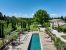 L’espace d’arrivée est nettement dissocié de la partie sud, qui dévoile un vaste jardin paysager structuré autour de deux platanes (dont un particulièrement majestueux), de roseraies, bassins, terrasses, et espaces de détente. Le tout compose un parc d’une rare élégance et parfaitement entretenu.