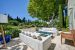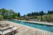 - Piscine à débordement de 25 × 3,6 m, sécurisée, avec plage en bois et deux tonnelles