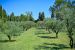 L’arrivée à la propriété est marquée par un portail élégant ouvrant sur une allée bordée de cyprès, traversant une première oliveraie d’une centaine d’arbres. Cette perspective mène à un vaste espace d’accueil au nord, composé :